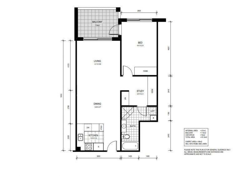 One bed plus study in Sydney Park Village
